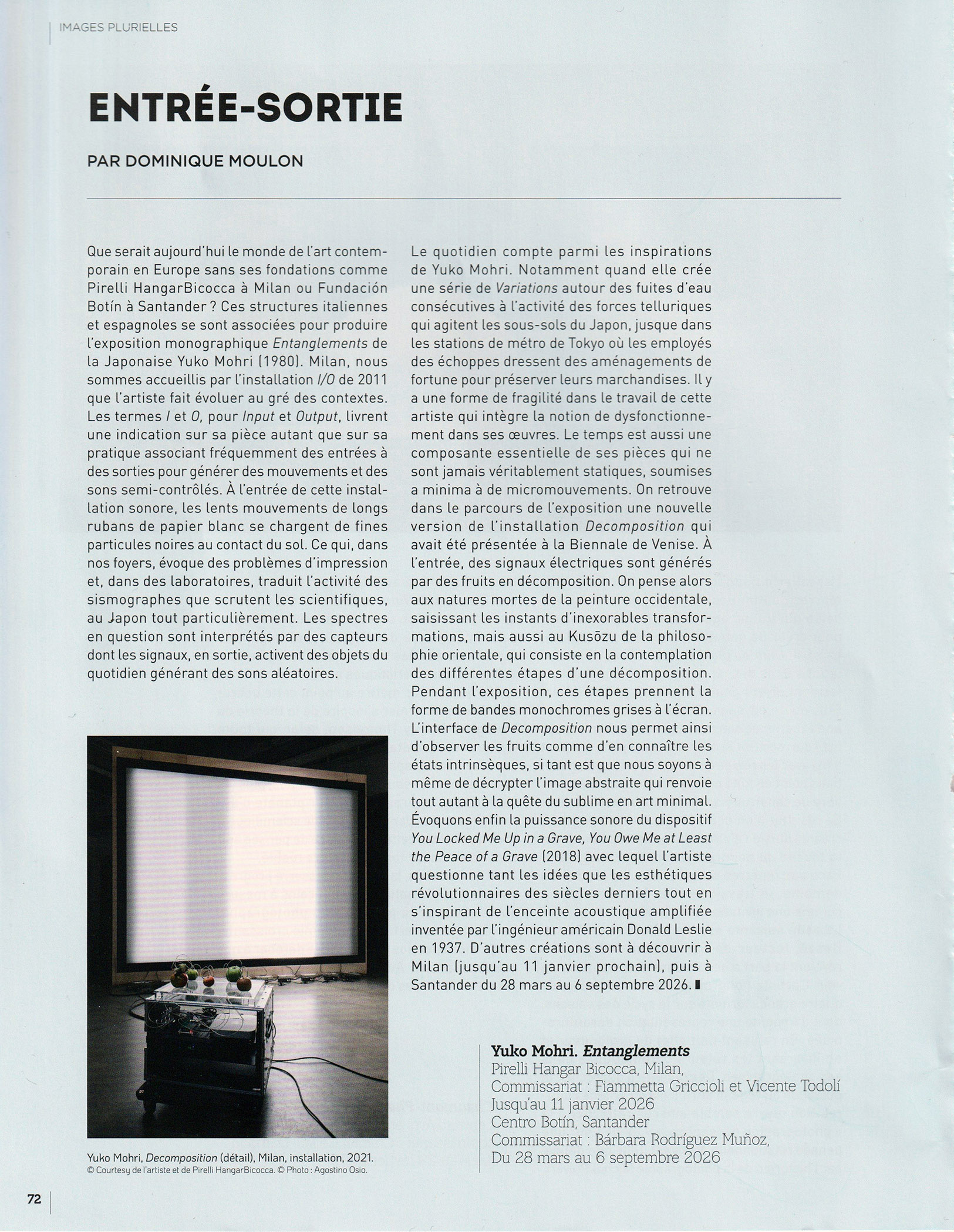 ARTICLES IN JOURNALS_ Entrée-Sortie, in Art Absolument #116, Paris, Janvier 2026, p.72 • Cerith Wyn Evans. Forms in Space... through Light (in Time), in Art Press #539, Paris, janvier 2026, p.65 • Les Illusions retrouvées. Nouvelles utopies à l'ère numérique, in Art Press #539, Paris, janvier 2026, p.76.
